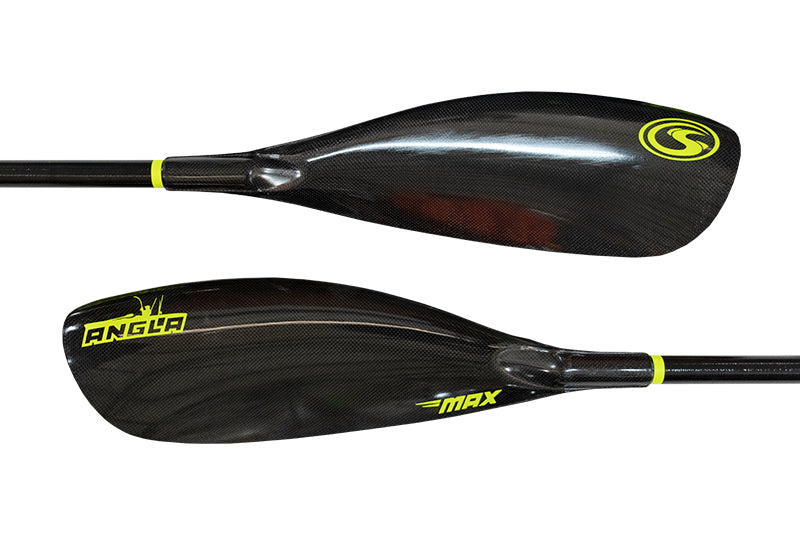 The Angla Max is the biggest blade in the Angla range. The blade has a slight twist with a greater surface area than any of the other Angla models. This creates a clean and smoother exit of the blade but with a powerful catch phrase. Most definitely suited to the bigger stronger paddlers or the angler looking for that maximum torque. The lightweight Carbon construction with extra reinforcing makes it strong yet light. This model is a 2 piece construction that has 2 options with a lighter carbon shaft or a glass shaft with an aluminium joiner and 10 cm of adjustment.