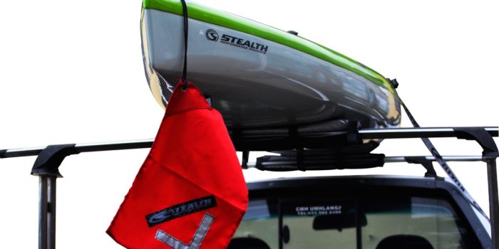 A bright safety flag used to attach onto the rear of your kayak. The flag makes the rear of your kayak on your car visible to keep it safe. Attaches by looping through itself to a carry handle. A must have for travelling on long trips and its compulsory on adventures to Mozambique.