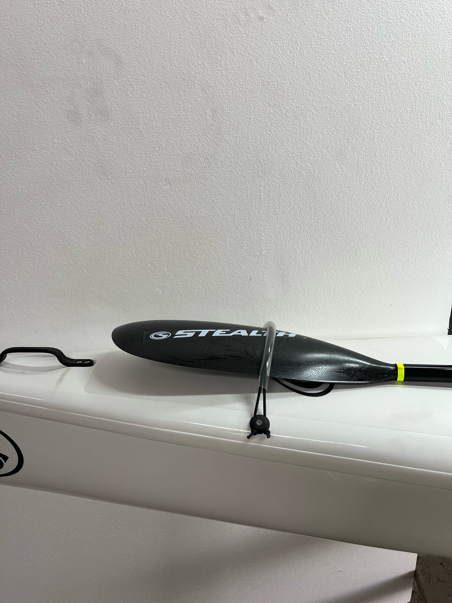 A clear plastic pipe with shockcord used on a kayak to keep your paddle secure on the deck.