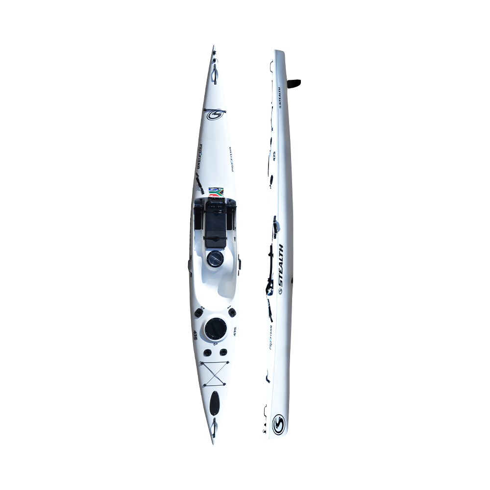 Stealth ProFisha 475 is the smallest and lightest model in the ProFisha range, engineered for anglers who want a high-performance kayak that’s easy to manage on land and water. At 4.75 metres long, it delivers impressive speed and glide for its size while remaining nimble and easy to surf launch and land. The compact hull and reduced weight make it ideal for paddlers who may struggle with larger skis or fish in tight coastal environments. Upgrades for the 2026 model include enhanced stability, an enlarged hatch and improved live-well design.